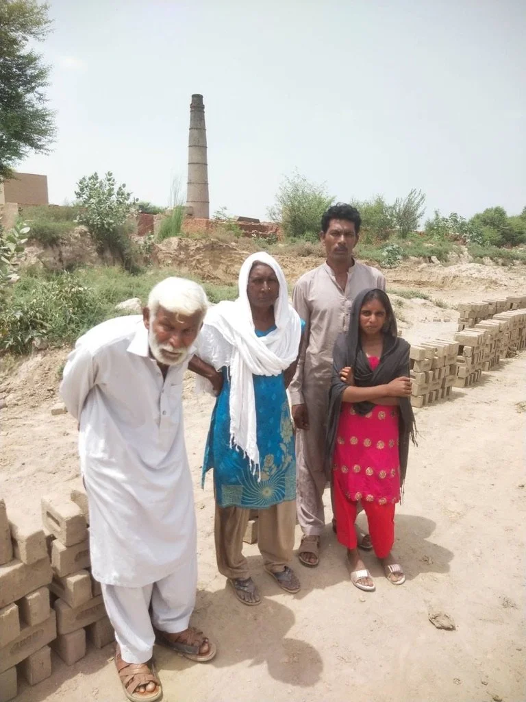 Aslam injured his back at work one day 30 years ago. He lost his job because he couldn’t work, but still had medical expenses piling up. He borrowed money from the brickyard owner to pay the debt, but since then his wife, son, and daughter have been in slavery. His son, Younsaf, was 5 then, but is now making bricks as is daughter, Ribqa, who was born into slavery.